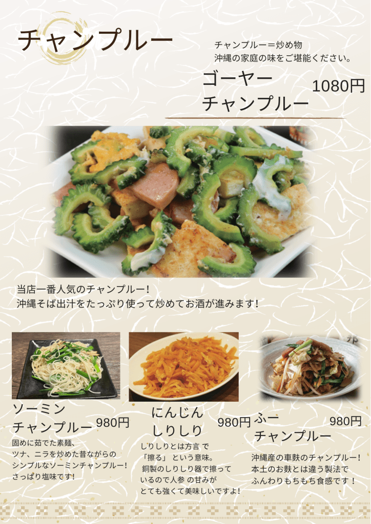 沖縄そばの出汁で炒めて味付けした、本場の味