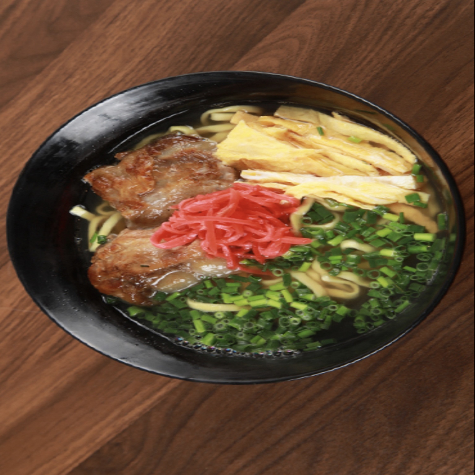 塩味ソーキと、お酒の締めに合うようあえて細めに打った麺と50年以上レシピの変わらないそば出汁の当店の看板商品